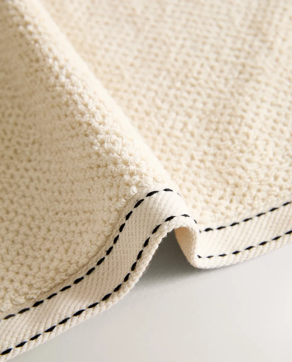 Хлопковое банное полотенце с текстурой рисовой строчки и контрастной строчкой по краю.