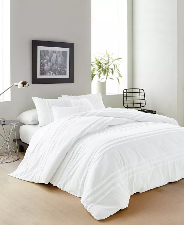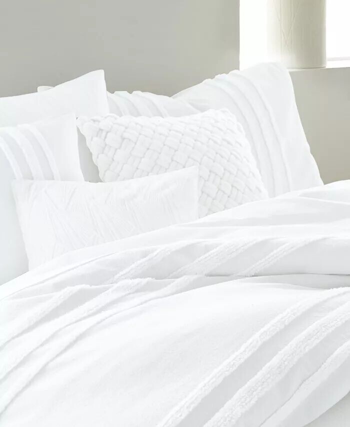 Современный взгляд на классическую технику представлен в комплекте одеял DKNY в полоску синели. Горизонтальная белая полоса синели на мягком сером фоне придает четкость этому тканому материалу, а координирующие элементы связывают ансамбль вместе с помощью противоположных вертикальных полос. Доступен в двух размерах: полный/королевский или королевский. В комплект входит одно одеяло и две накидки.