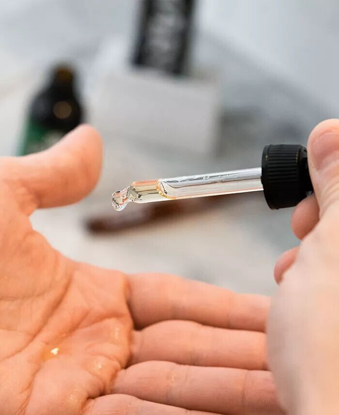 Нанесите несколько капель на ладони и вотрите в волосы бороды от корней до кончиков.