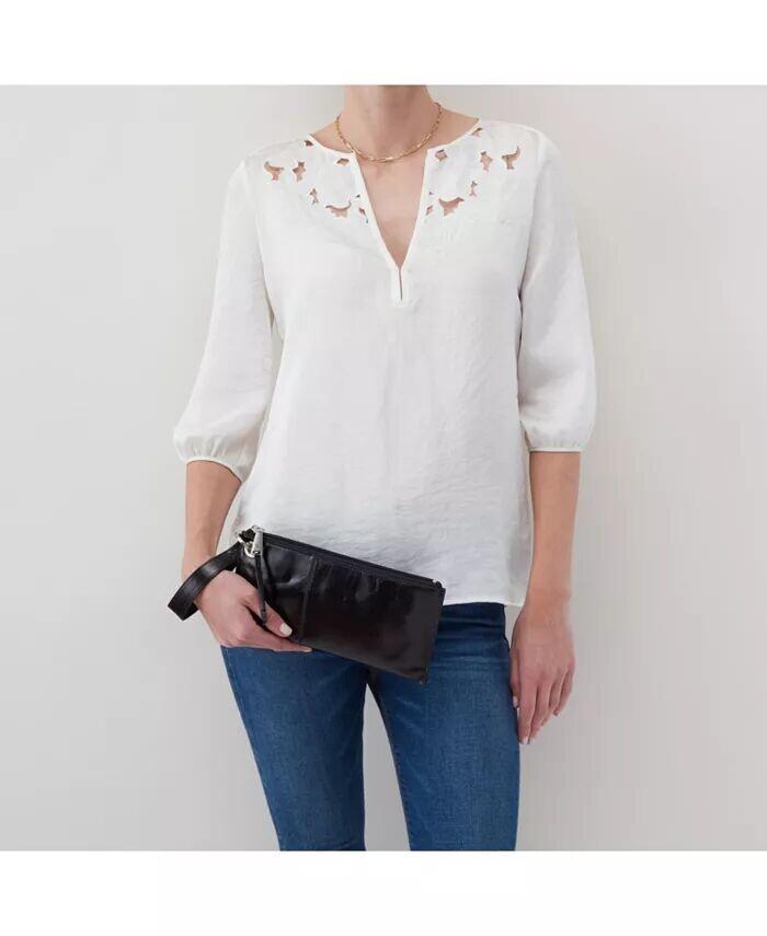 Наш клатч Vida, бестселлер и идеально подходящий для моментов, когда нужно взять с собой, имеет удобный ремешок на запястье и может служить органайзером внутри вашей сумки HOBO.