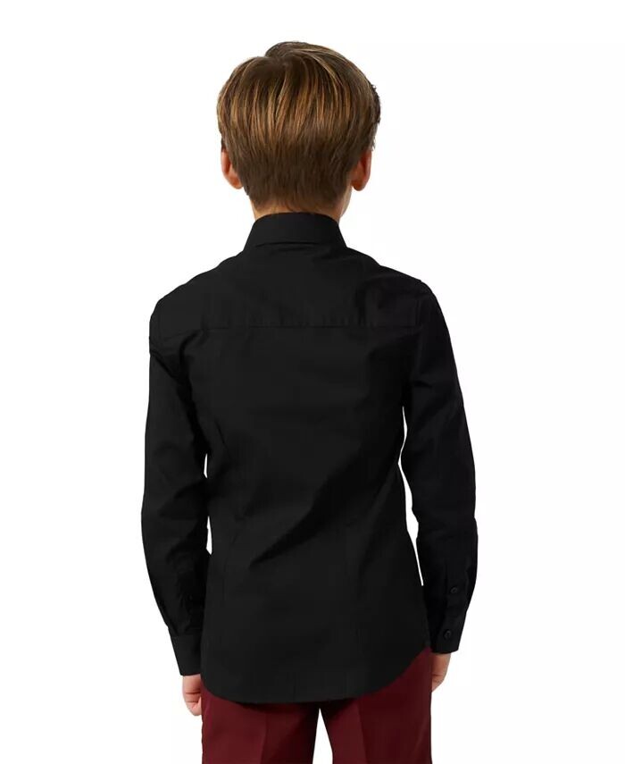 Если вы ищете рубашку, которая дополнит образ вашего маленького джентльмена, эта черная рубашка добавит его образу шарма и изысканности. Это идеальная одежда, подходящая к любому костюму, от смелого до базового. Кроме того, эта рубашка достаточно длинная, чтобы заправить его в штаны, и она останется там, даже когда он бегает, потому что она специально разработана для ношения с костюмом.