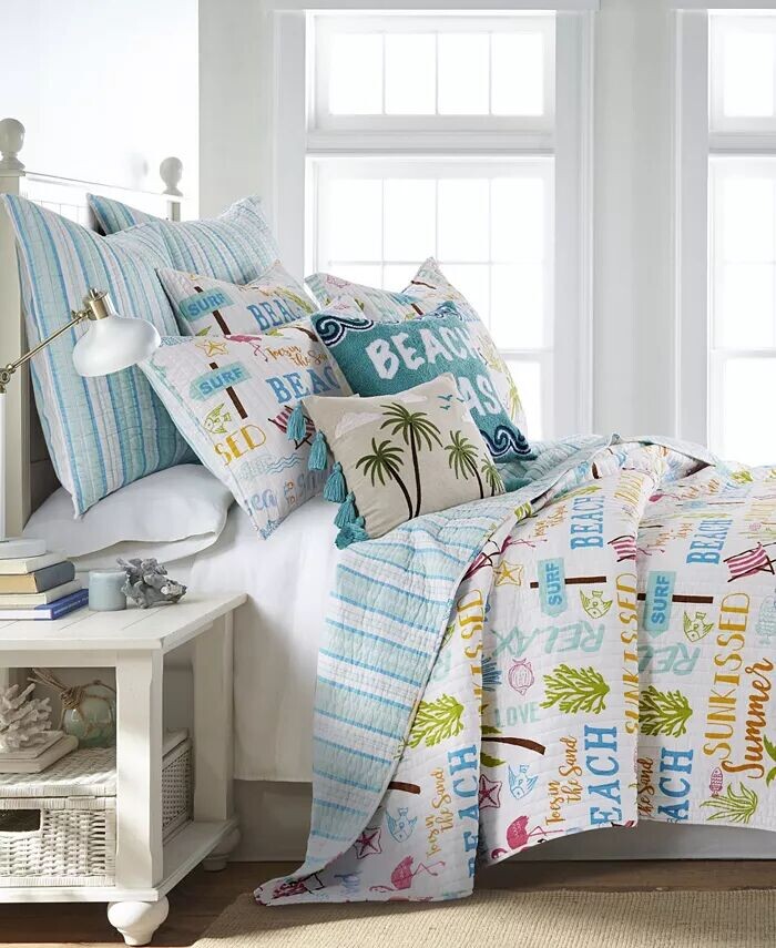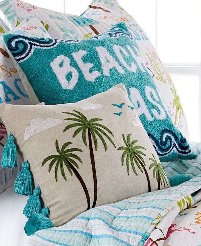 Декоративная пляжная подушка сочетается с коллекцией постельного белья Levtex для домашнего пляжа. На этой подушке есть надпись «Пляж, пожалуйста, полотенце», вышитая волнистой каймой сверху и снизу. Подушка поставляется с мягким роскошным перьевым наполнителем и чехлом.