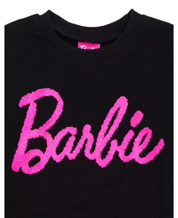 Платье из французской махровой ткани для девочек Barbie, черный