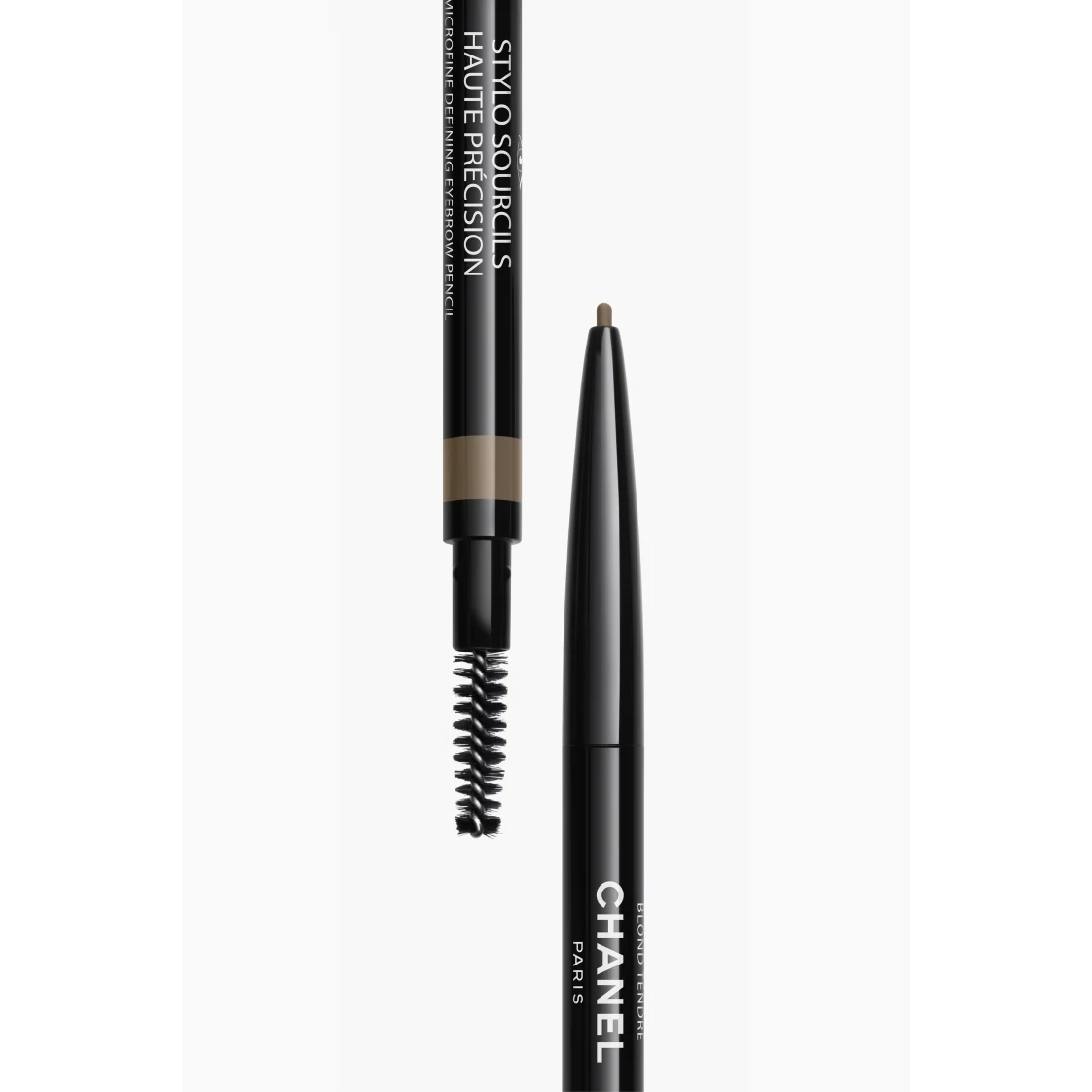 STYLO SOURCILS HAUTE PRÉCISION обогащен смесью воска растительного происхождения, производным касторового масла, фитостеролами и эфирами жожоба для придания гладкой текстуры. Долговечная водостойкая формула обеспечивает до 12 часов** ношения и устойчива к влаге и теплу.