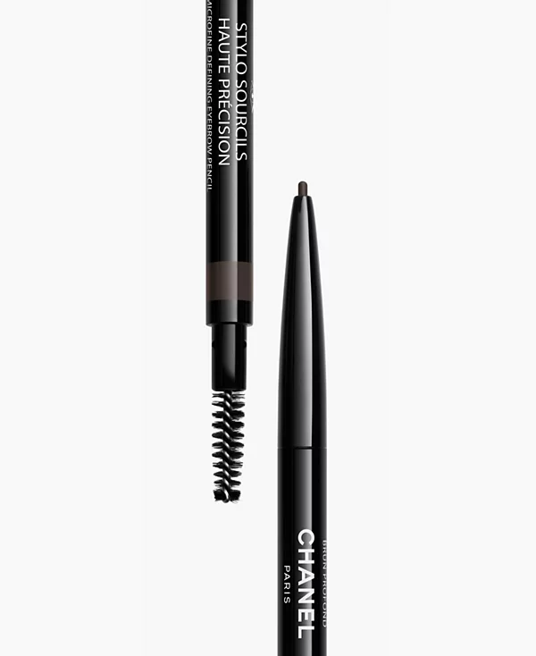 STYLO SOURCILS HAUTE PRÉCISION обогащен смесью воска растительного происхождения, производным касторового масла, фитостеролами и эфирами жожоба для придания гладкой текстуры. Долговечная водостойкая формула обеспечивает до 12 часов** ношения и устойчива к влаге и теплу.