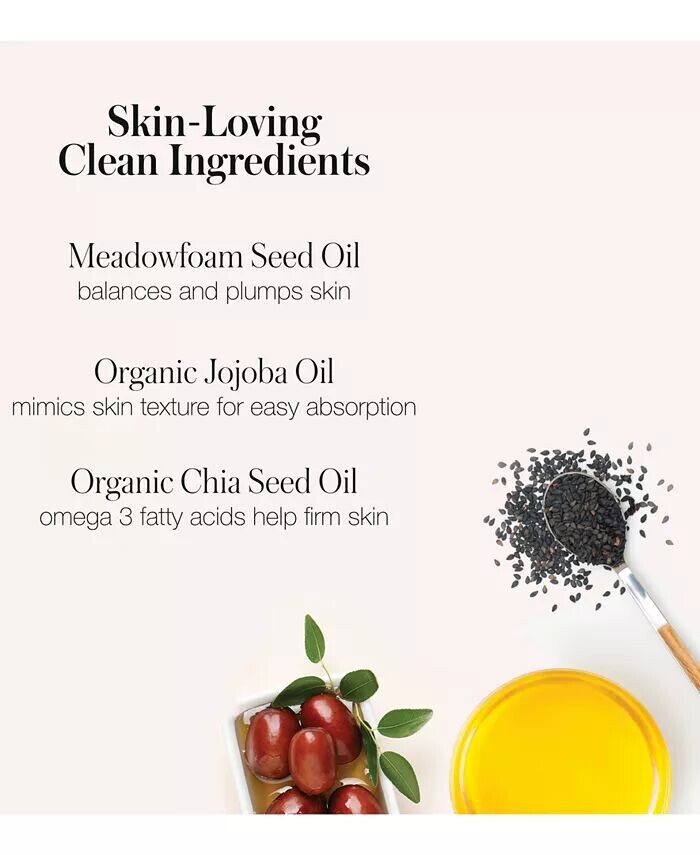 Масло жожоба, богатое антиоксидантами, имитирует тон и текстуру кожи, обеспечивая легкое впитывание питательных веществ кожи и одновременно создает защитный барьер от стрессовых факторов окружающей среды.