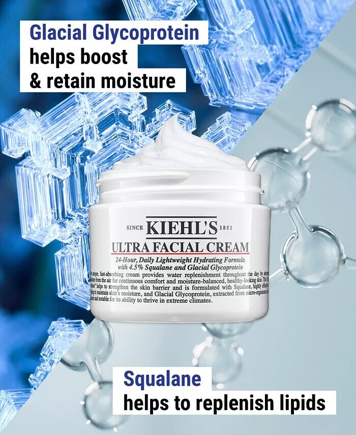 Откройте для себя увлажняющий крем №1 от Kiehl для всех типов кожи с содержанием сквалана 4,5%. Этот крем для лица обеспечивает 24-часовое увлажнение, делая кожу более мягкой и гладкой.