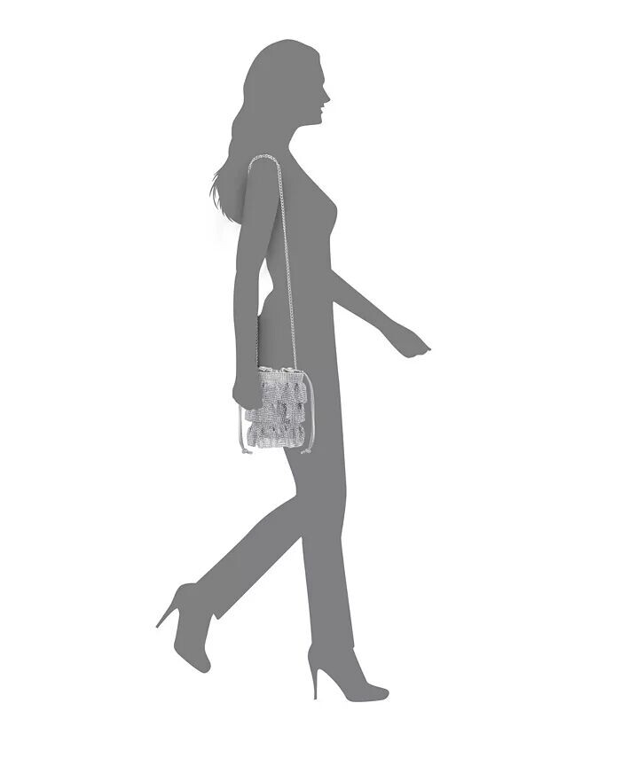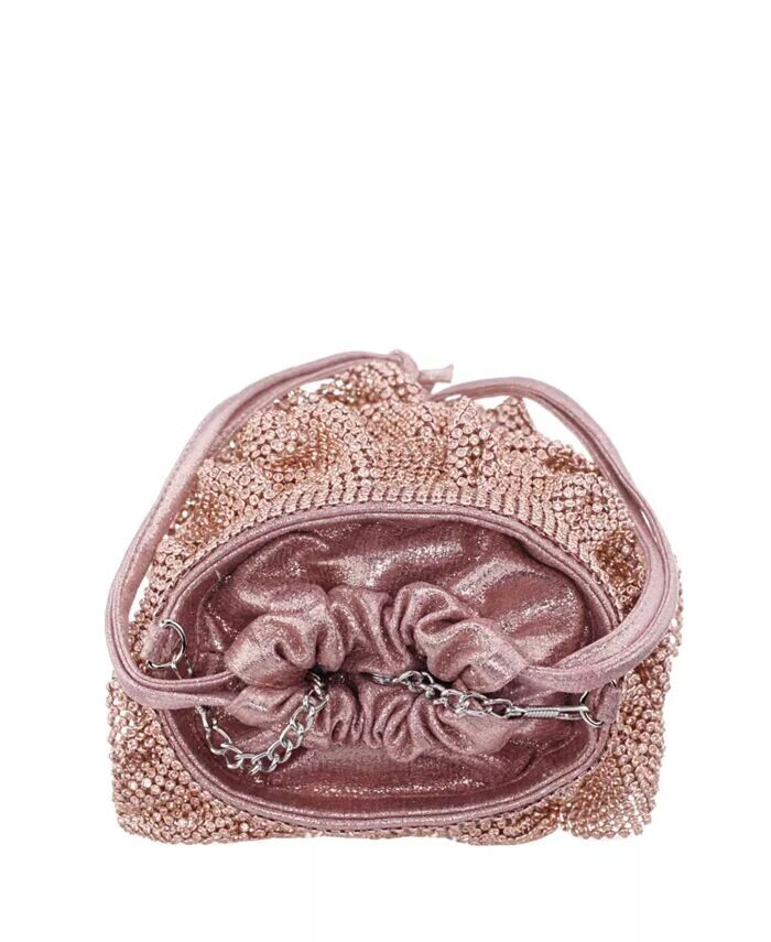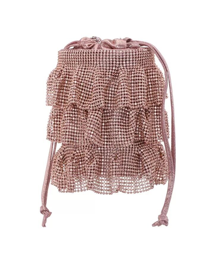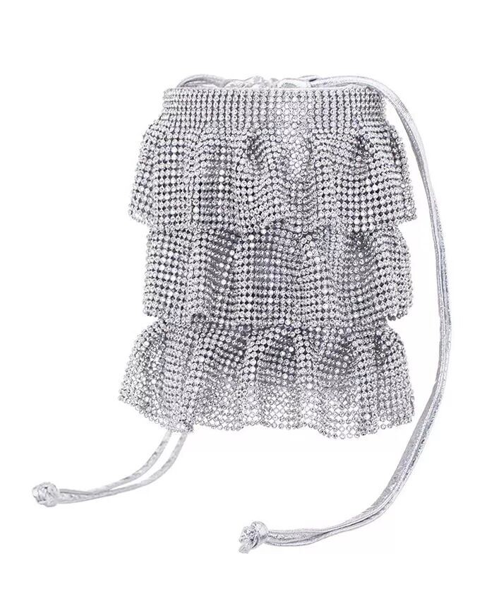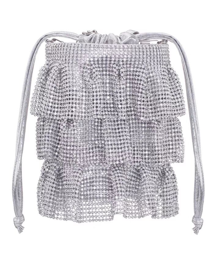 Эта женственная сумка-мешочек изготовлена ​​из трех ярусов кристаллической сетки. Застежку на шнурок можно держать в руке или использовать цепочку для универсального стиля.