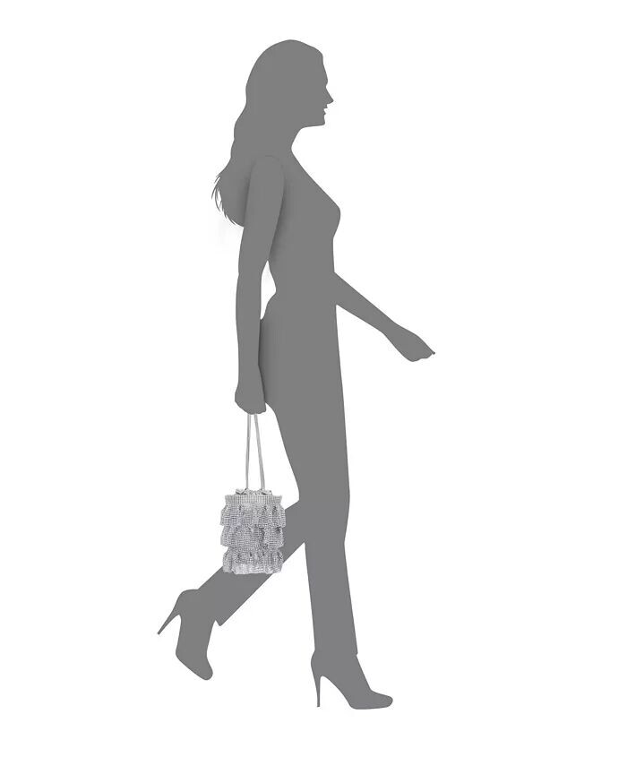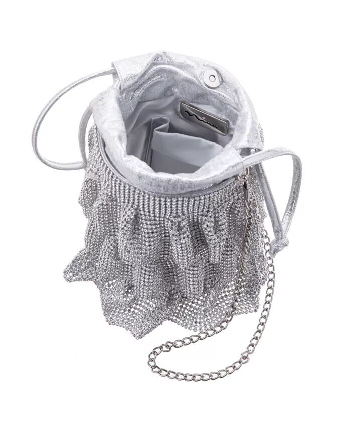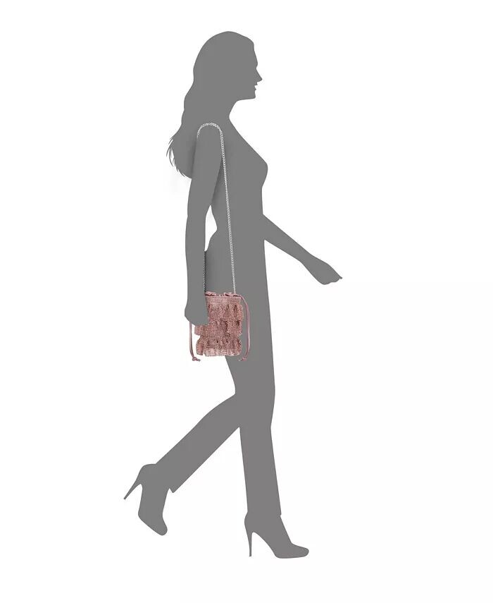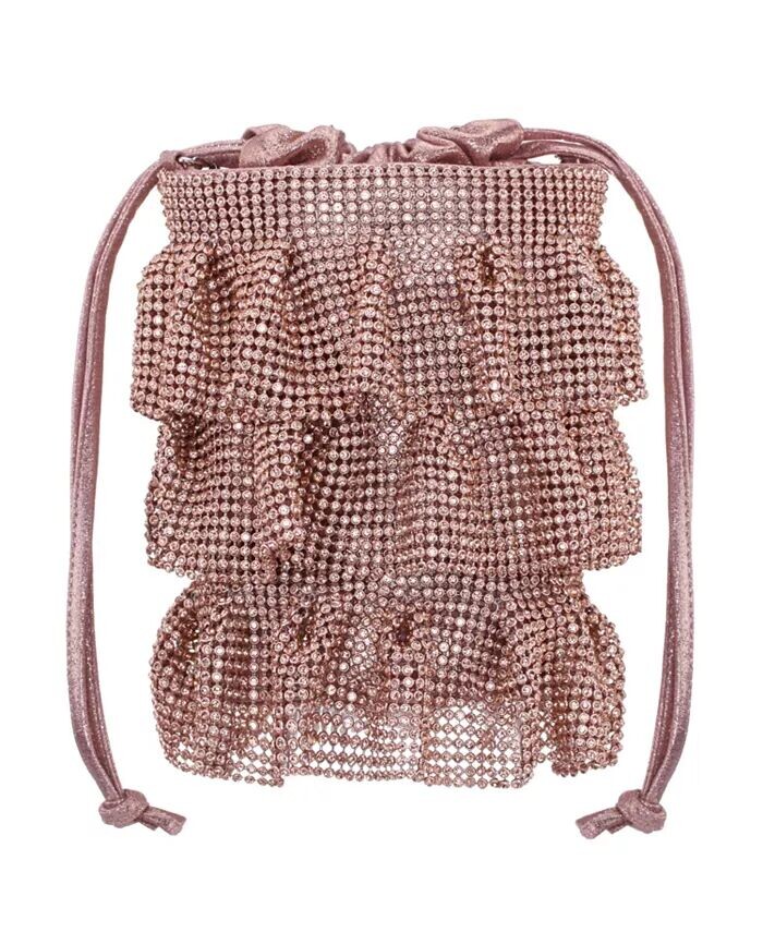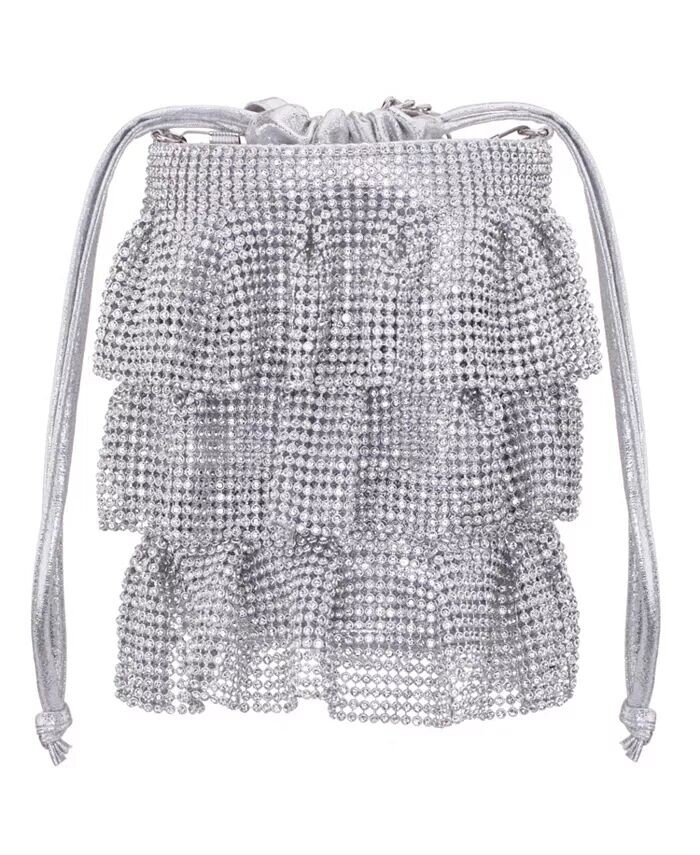 Эта женственная сумка-мешочек выполнена из трех ярусов кристаллической сетки. Застежку на шнурок можно держать в руке или использовать цепочку для универсального стиля.