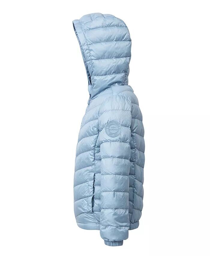 Рост модели: 53 дюйма, вес 55 фунтов, размер 8. Верх и подкладка: 100 % нейлон. Наполнитель: 90 % белый пух, 10 % перо.Машинная стирка