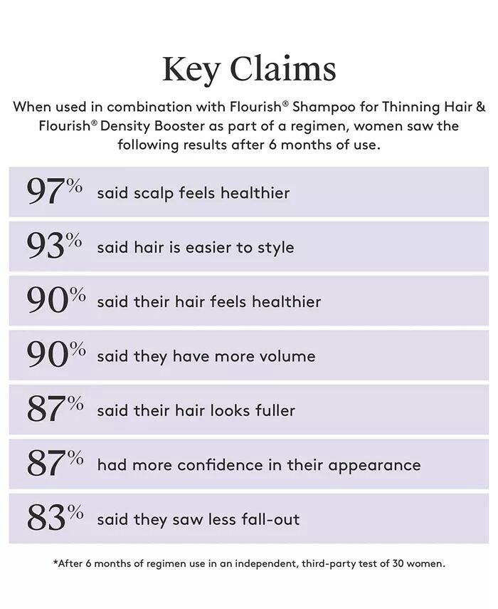 ЧТО ЭТО: Кондиционер для всех женщин с редеющими волосами; безопасен для химически обработанных или окрашенных волос ЧТО ОН ДЕЛАЕТ: Питает, утолщает и распутывает ОСНОВНЫЕ ИНГРЕДИЕНТЫ: Альфа-кератин 60ku Клинический протеин; пептиды питают и успокаивают кожу головы, создавая здоровую среду для роста; пробиотический фермент — это усилитель микробиома, который, как известно, питает кожу головы, помогает уменьшить раздражение и поддерживает потребление кислорода клетками. КАК ИСПОЛЬЗОВАТЬ: Нанесите четверть размера кондиционера между ладонями; нанести на влажные волосы от середины стержня до кончиков; оставьте на 1–3 минуты, прежде чем тщательно смыть РЕЗУЛЬТАТЫ: 97% отметили, что кожа головы стала более здоровой* 93% отметили, что волосы легче укладывать* 90% заявили, что их волосы стали более здоровыми*90% заявили, что у них больше объема* 87% отметили, что их волосы выглядят более густыми* 87% стали более уверены в своем внешнем виде* 83% заявили, что стали меньше выпадать* * На основании независимого стороннего теста с участием 30 женщин после 6 месяцев применения режима; при использовании в сочетании с шампунем Flourish для истонченных волос и усилителем плотности Flourish. ИСПОЛЬЗОВАТЬ С: Шампунем для истонченных волос Flourish Усилителем плотности Flourish.