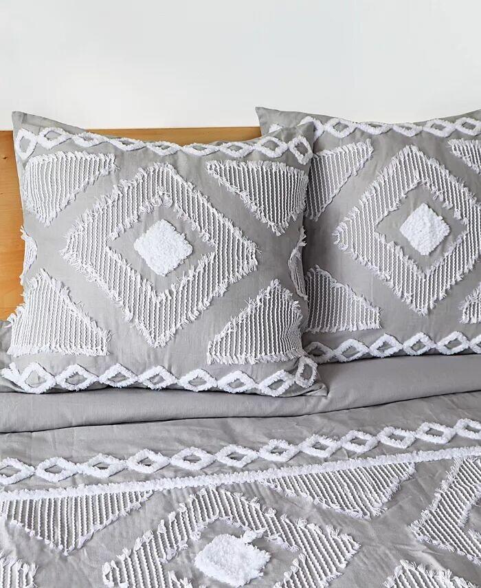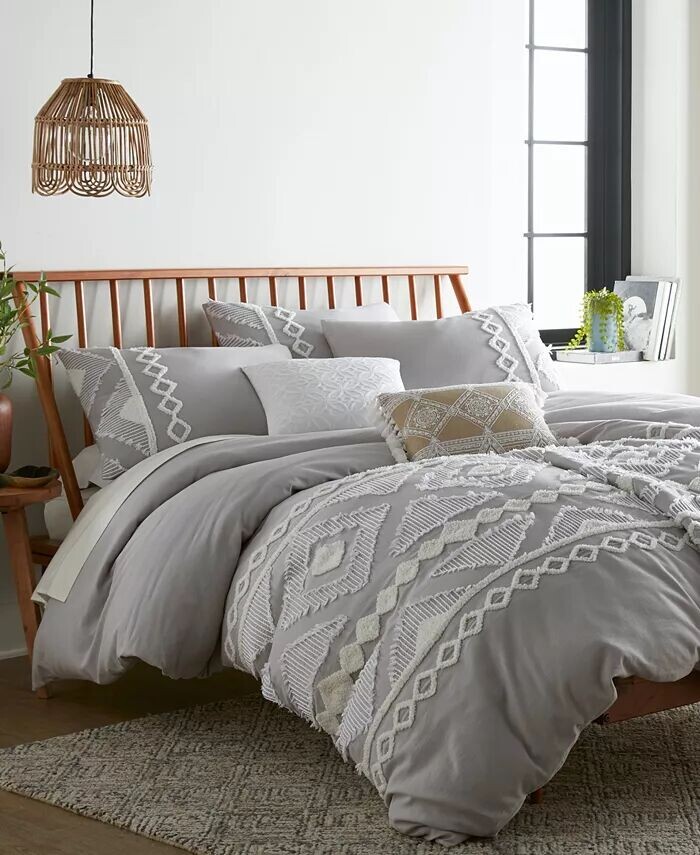 Harleson модный, объемный и современный, передняя часть представляет собой тафтинговый и потертый белый этнический узор на сером фоне, а обратная сторона — однотонный серый. 100% хлопок, застежки на пуговицы в нижней части пододеяльника прочны и просты в использовании. использование