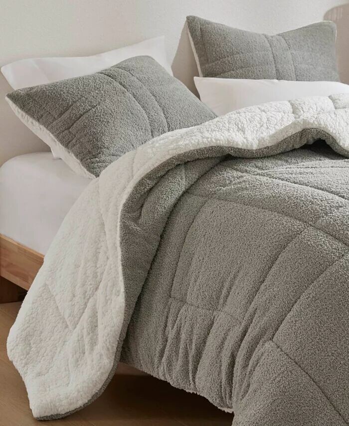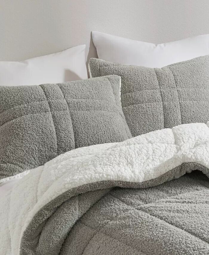Этот комплект одеял с маслянисто-мягким лицом и уютной изнанкой из шерпы заставит вас хотеть оставаться в постели весь день. Сплошной нейтральный тон и классическая стежка на оконном стекле позволяют этой кровати легко вписаться в ваш интерьер.