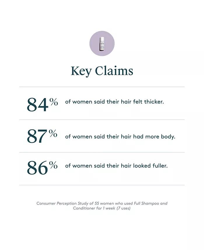 ЧТО ЭТО: Легкая кружевная пена для всех типов волос, которым требуется придание прядям объема или густоты; особенно хорош для тонких, вялых волос; безопасен для окрашенных и химически обработанных волос. ДЕЙСТВИЯ: Очищает, утолщает и придает объем; промывает чисто, не снимая и не обезвоживая волосы; увеличивает объем тонких, плоских волос, обеспечивая максимальную подвижность и упругость ОСНОВНЫЕ ИНГРЕДИЕНТЫ: Фосфолипиды, полученные из соевых бобов, помогают бороться с вьющимися волосами и защищают от влажности КАК ИСПОЛЬЗОВАТЬ: Применяйте четверть размера шампуня в пену между ладонями; нанести на влажные волосы, массировать до образования густой пены, затем смыть; нанесите кондиционер и тщательно смойте РЕЗУЛЬТАТЫ: 84% женщин отметили, что их волосы стали гуще* 87% женщин отметили, что их волосы стали более объемными* 86% женщин отметили, что их волосы стали гуще * *На основе исследования потребительского восприятия с участием 55 женщин, которые использовали шампунь Full Shampoo и кондиционер Full в течение 1 недели (7 применений). ИСПОЛЬЗУЙТЕ С: Кондиционером Лечебным маслом.