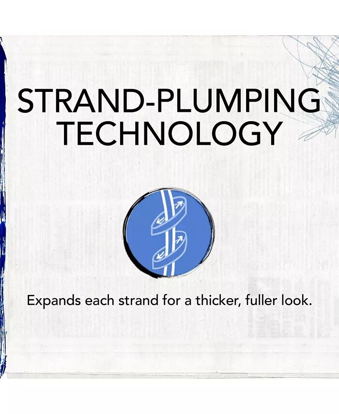 Содержит пантенол (провитамин B5) и технологию Strand-Plumping, которая мгновенно утолщает и делает каждую прядь более объемной.