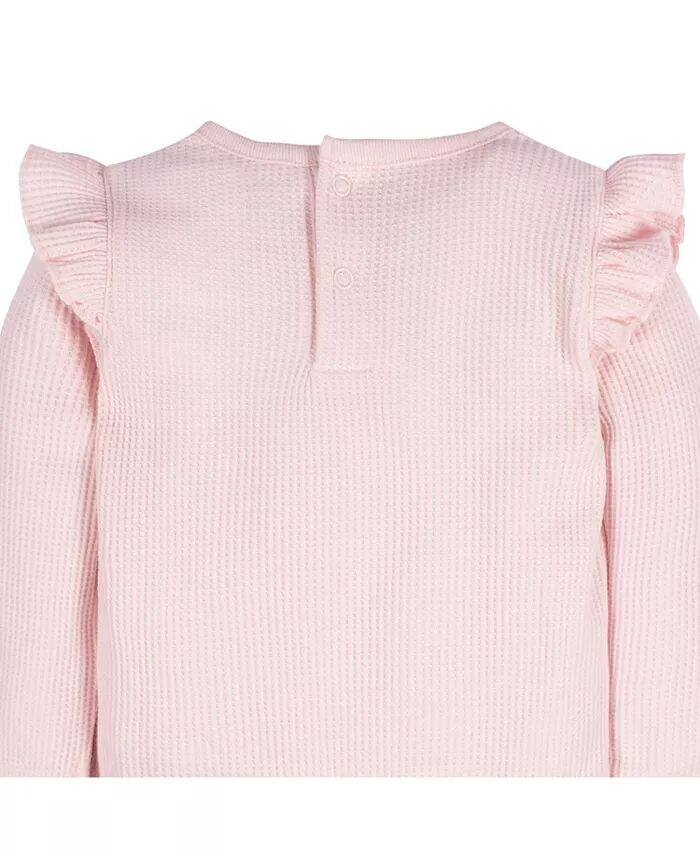Фирменное боди Onesies – незаменимая вещь в гардеробе. Это боди, которое можно носить как цельное, так и многослойное в прохладные дни, изготовлено из сверхмягкой смесовой ткани с рельефной ребристостью на шее и ногах для дополнительного комфорта. Благодаря длинным рукавам вашей девочке будет уютно и тепло даже в прохладную погоду. Пуловер легко надеть и закрепить с помощью кнопок на штанинах. Оборки на плечах придают этому быстрому крою очаровательный вид. Наши предметы первой необходимости прошли независимый сертификат STANDARD 100 от OEKO-TEX, поэтому вам не придется беспокоиться о вредных веществах в гардеробе вашего ребенка.