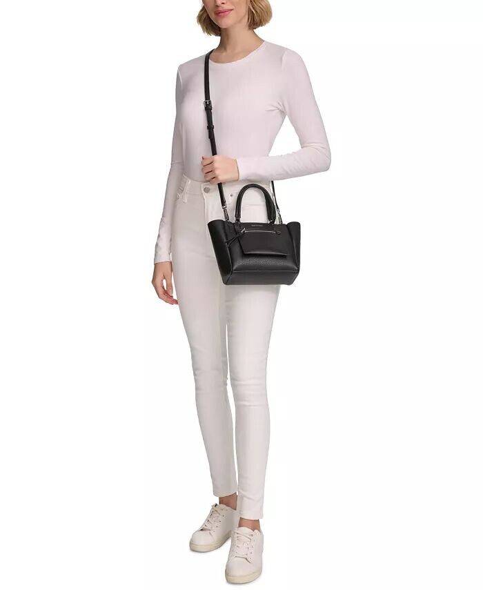 Практичный и шикарный аксессуар от Calvin Klein можно носить за верхние ручки или прикрепить ремешок для громкой связи. Карманы внутри и снаружи обеспечат порядок, а серебристая фурнитура придает изысканный вид.