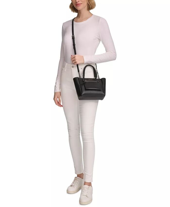 Этот практичный и шикарный аксессуар от Calvin Klein с красивой контрастной текстурой можно носить за верхние ручки или прикрепить ремешок, чтобы освободить руки. Карманы внутри и снаружи обеспечат порядок, а серебристая фурнитура придает изысканный вид.