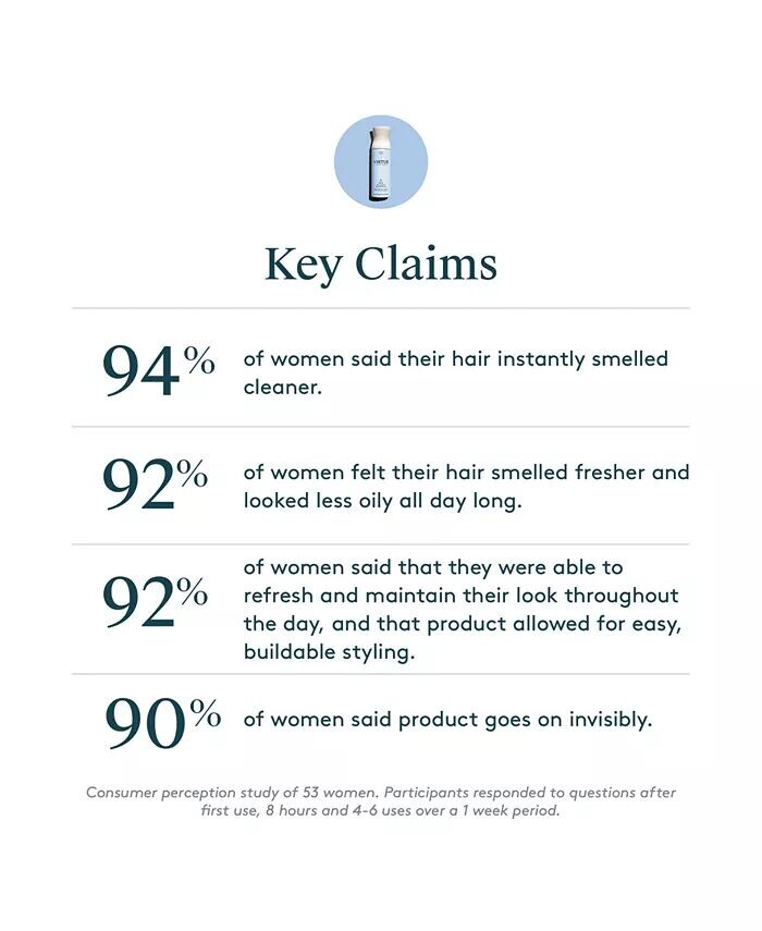 ЧТО ЭТО: Невидимая, сверхлегкая формула для всех типов и оттенков волос, нуждающихся в освежении; безопасен для окрашенных и химически обработанных волос. ДЕЙСТВИЯ: Очищает, освежает и бодрит; идеально подходит для придания объема и укладки. ОСНОВНЫЕ ИНГРЕДИЕНТЫ: Крахмал тапиоки обеспечивает исключительные свойства впитывания масла и аккуратно смахивает с волос; каолин — это чистая глина высокой степени очистки, которая помогает удалить загрязнения с волос. КАК ИСПОЛЬЗОВАТЬ: Хорошо встряхните перед использованием Держите баллончик на расстоянии 6–8 дюймов от волос и равномерно распыляйте на корни Дайте продукту впитывайте масло в течение 10 секунд Слегка массируйте кончиками пальцев или при желании слегка расчешите РЕЗУЛЬТАТЫ: 94% женщин отметили, что их волосы мгновенно стали пахнуть чище* 92% женщин почувствовали, что их волосы стали пахнуть свежее и выглядели менее жирными в течение всего дня* 92% женщин сказали, что они смогли освежить и сохранить свой внешний вид в течение дня, и что продукт позволяет легко создавать укладки* 90% женщин сказали, что продукт остается незаметным * *На основе исследования потребительского восприятия с участием 53 женщин; участники ответили на вопросы после первого использования, 8 часов и 4–6 применений в течение 1 недели. ИСПОЛЬЗУЙТЕ С: Лечебным маслом Очищающим средством. Шампунь Этот продукт будет доставлен стандартной наземной доставкой и не подлежит премиальной доставке или доставке в ночное время.