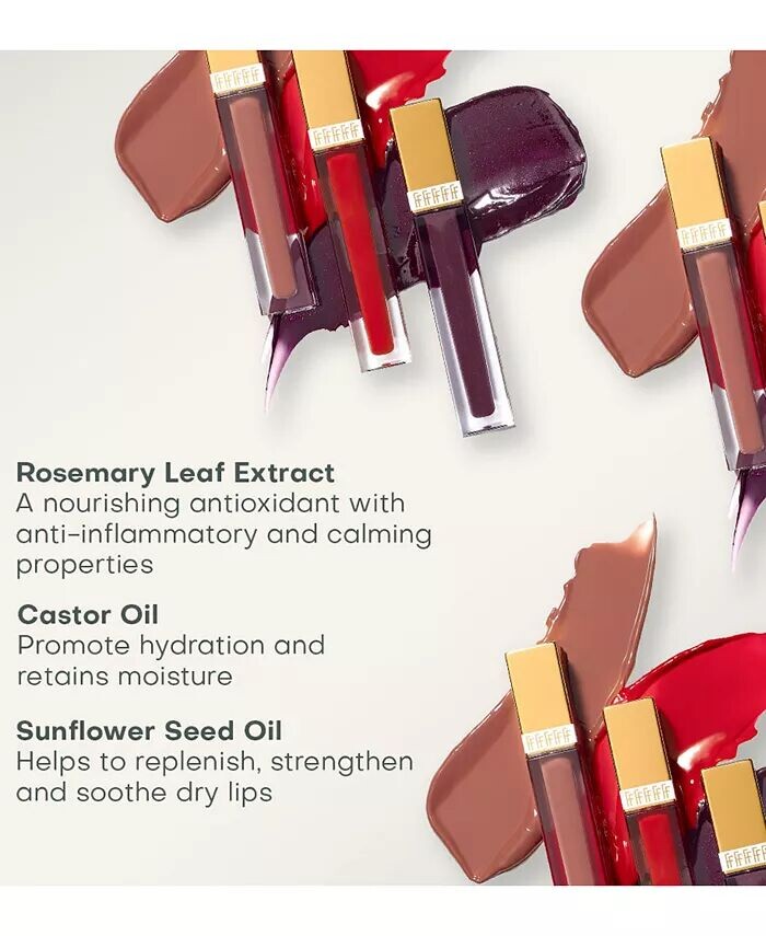 Знаменитые оттенки-бестселлеры Fashion Fair, переосмысленные для следующего поколения. Насыщенные пигментированные оттенки (от ярких нюдовых до ярко-красных и мерцающих ягод) подчеркивают более глубокие тона кожи, окутывая губы декадентским, сногсшибательным цветом. Кроме того, гибкие полимеры в сочетании с ингредиентами, усиливающими выработку коллагена, обеспечивают эффект объема.