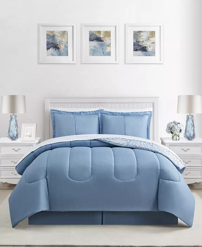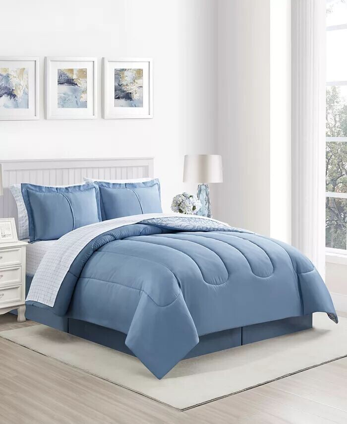 King: одеяло 106 x 88 дюймов, две наволочки King 20 x 36 дюймов, юбка 78 x 80 дюймов x Простыня размером 14 дюймов, 108 x 102 дюйма, простыня размером 78 x 80 x 12,25 дюйма, две королевские наволочки 20 x 40 дюймов