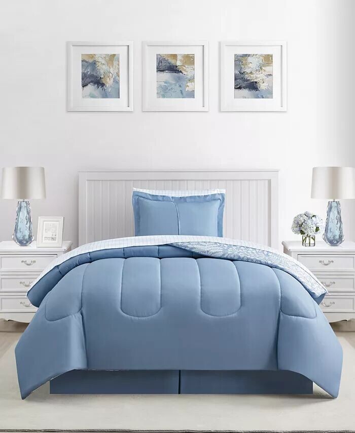 Твин: одеяло 66 x 86 дюймов, одна стандартная накидка 20 x 26 дюймов, юбка 39 x 54 x 14 дюймов, плоская простыня 68 x 96 дюймов, простыня 39 x 75 x 12,25 дюймов. ", наволочка 20 x 30 дюймов