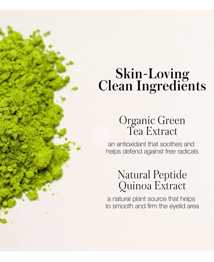 Экстракт зеленого чая является антиоксидантом, который успокаивает и помогает защититься от свободных радикалов; Экстракт пептида киноа помогает разгладить и укрепить область век