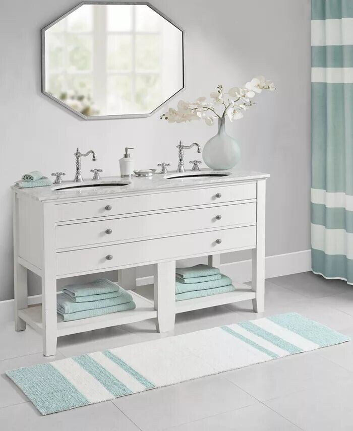 Придайте роскошный спа-качество декору вашей ванной комнаты с помощью мягкого, ультра-впитывающего хлопка и освежающих полосок этого двустороннего коврика для ванной от Madison Park.