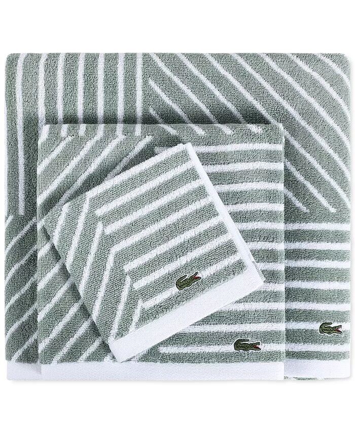 Добавьте свежий цвет и современную графическую привлекательность в свою ванную комнату с помощью банного полотенца Guethary от Lacoste с игривым узором, переходящим в инвертированную цветовую гамму.
