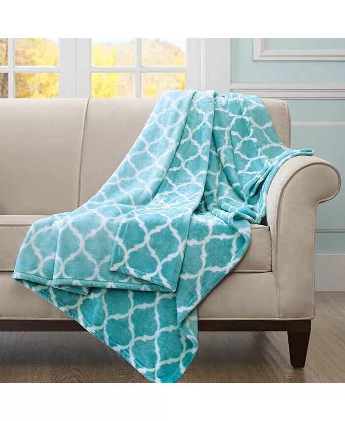 Плюшевый плед с геометрическим рисунком, 60 x 70 дюймов Madison Park, синий