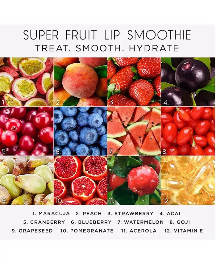 Роскошная формула: очень маслянистая, легкая и с сатиновым блеском; устойчив к переносу, поэтому вы можете пить, перекусывать и целоваться; Комплекс суперфруктов маракуйи увлажняет на 12 часов и разглаживает — уход за кожей ваших губ!
