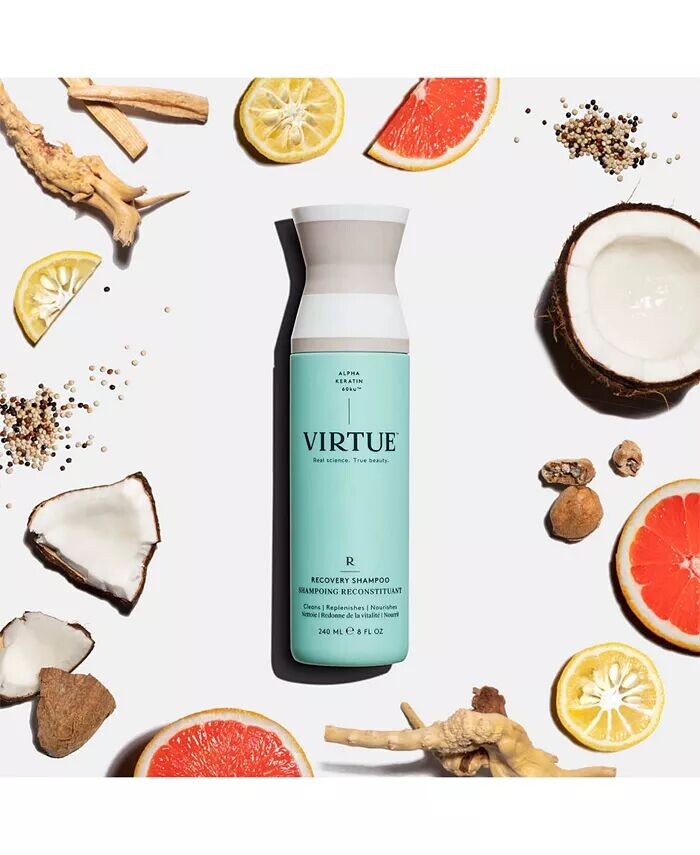 Шампунь Virtue Recovery восстанавливает поврежденные волосы при каждом использовании. Он мягко растворяет ежедневные загрязнения, заполняя трещины и делая волосы здоровыми, мягкими и эластичными. Шампунь и кондиционер Recovery, содержащие первый в своем роде альфа-кератин 60ku, действуют как мощные лечебные средства, нанося кератиновый белок непосредственно в волосы. Они усердно работают, чтобы заполнить трещины в кутикуле, исцелить волосы и устранить повреждения, нанесенные теплом, химическими веществами и окрашиванием. Аромат представляет собой богатую, питательную смесь сливочных экстрактов кокоса и тропического юзу, окутанных теплыми древесными нотами.