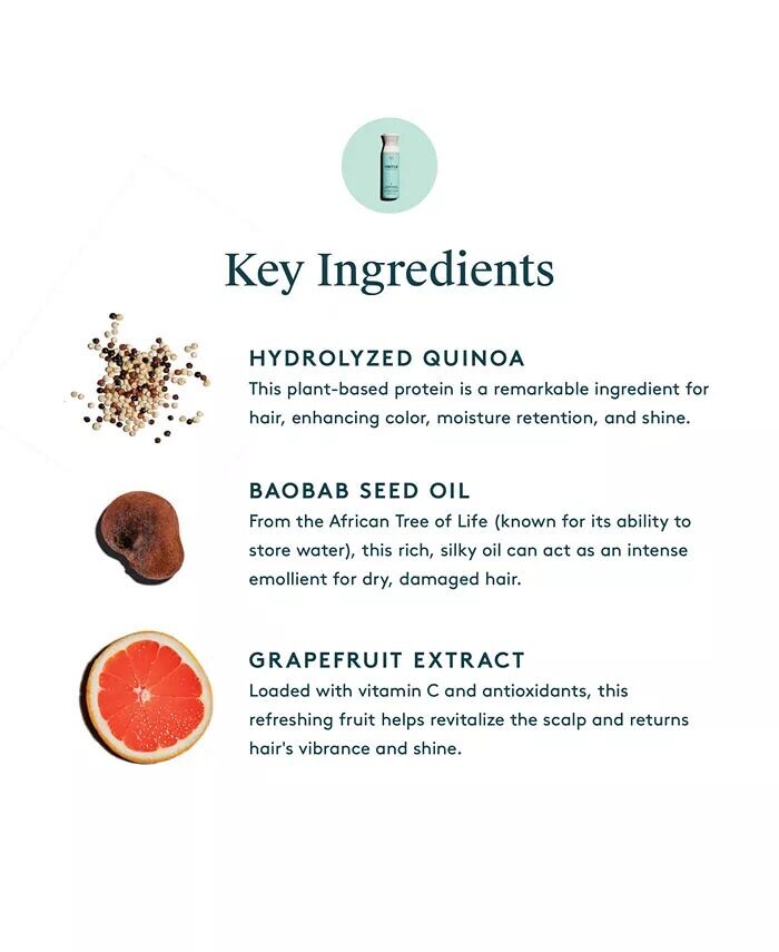 ЧТО ЭТО: Роскошный пенящийся шампунь для всех типов волос, особенно для поврежденных или нуждающихся в дополнительном уходе; идеально подходит для волос, подвергшихся стрессу и обезвоженных в результате термической укладки или химической обработки; безопасен для окрашенных и химически обработанных волос. ДЕЙСТВИЯ: Очищает, восстанавливает и питает, обеспечивая увлажняющий эффект; питает сухие, поврежденные, истощенные волосы, возвращая им увлажненное здоровье. ОСНОВНЫЕ ИНГРЕДИЕНТЫ: Гидролизованная киноа — это белок, который улучшает цвет, удерживает влагу и придает блеск; масло семян баобаба может действовать как интенсивное смягчающее средство для сухих, поврежденных волос; экстракт грейпфрута помогает оживить кожу головы и возвращает волосам яркость и блеск. СПОСОБ ПРИМЕНЕНИЯ: Разотрите четверть количества шампуня в пену между ладонями; нанести на влажные волосы, массировать до образования густой пены, затем смыть; нанесите кондиционер и тщательно смойте РЕЗУЛЬТАТЫ: 97% женщин отметили, что их волосы стали мягче уже после одного применения* 97% женщин почувствовали, что их волосы стали менее поврежденными* 91% женщин почувствовали их волосы стали более послушными* *По данным исследования потребительского восприятия с участием 42 женщин, которые использовали восстанавливающий шампунь и восстанавливающий кондиционер в течение 2 недель (10 применений) ИСПОЛЬЗОВАТЬ С: восстанавливающим кондиционером лечебным маслом