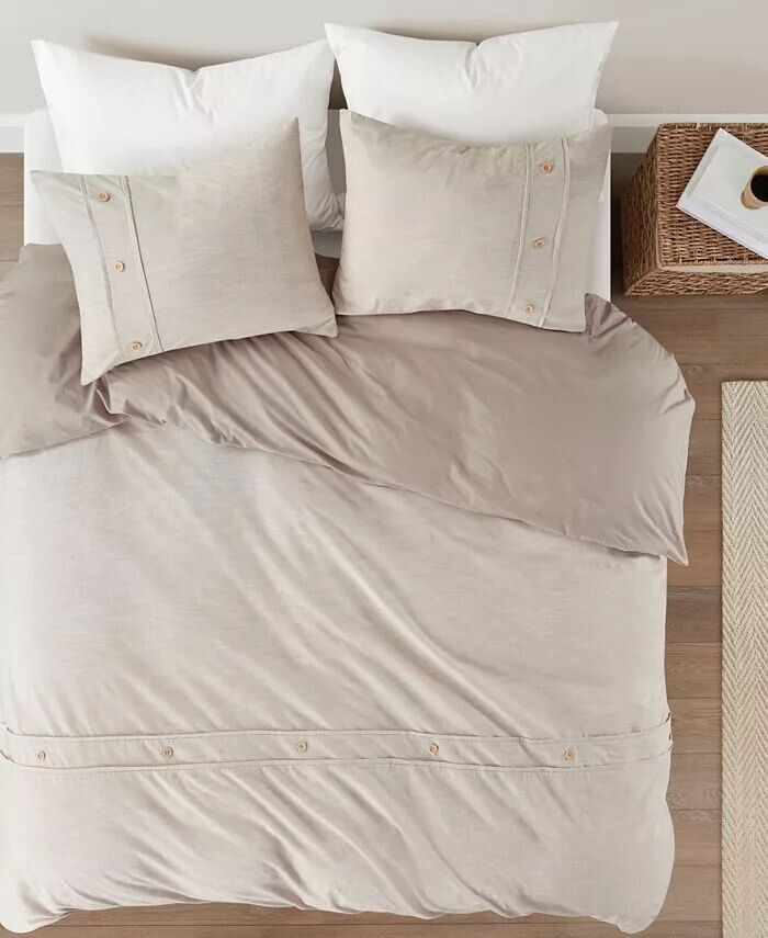 Комплект из трех хлопковых пододеяльников Clean Spaces Dover со съемной вставкой привнесет освежающее обновление в вашу спальню. Это хлопковое пододеяльник с пуговицами на мягкой ткани создает современный вид загородного дома.