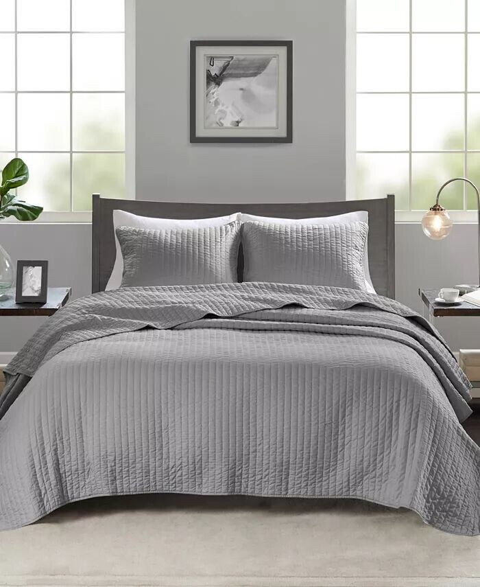 Комплект покрывал Keaton от Madison Park — идеальное многослойное изделие, но при этом достаточно уникальное, чтобы стоять отдельно на вашей кровати. Это покрывало и сопровождающие его накладки невероятно мягкие и имеют детализированные стежки, придающие этой коллекции особый вид.