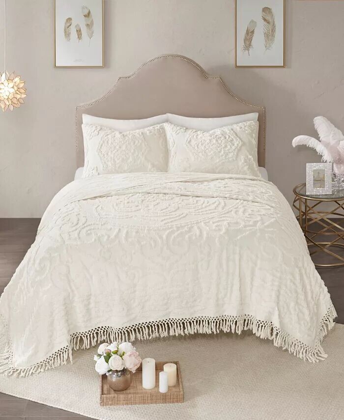 Комплект покрывал Madison Park Laetitia из синели с медальонами и бахромой станет шикарным обновлением декора вашей спальни. Это покрывало украшено элегантным медальоном из синели.