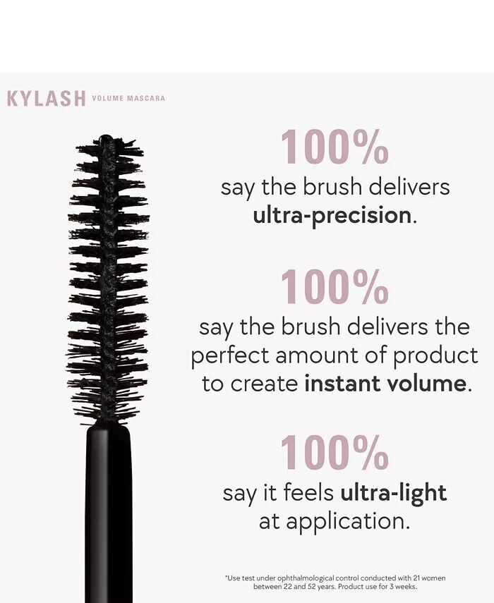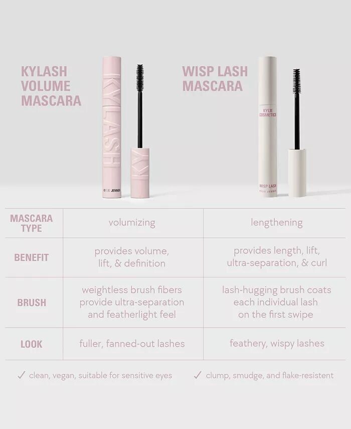 Поднимите, очертите и сделайте ресницы более объемными с помощью туши для ресниц Kylash Volume Travel Size от Kylie Cosmetics.