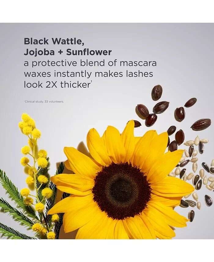 ЧТО ЭТО: Тушь для увеличения объема ресниц. ЧТО ОНА ДЕЛАЕТ: Заметно удлиняет и утолщает; устойчив к образованию пятен и влажности; пигментированная черная формула; легко удалить ОСНОВНЫЕ ИНГРЕДИЕНТЫ: Восковой комплекс для придания объема представляет собой защитную смесь восков для туши черного плетня, жожоба и подсолнечника, которая мгновенно делает ресницы в 2 раза гуще* Комплекс для увеличения объема сфингозина и пантенола помогает защитить ресницы и делает ресницы заметно гуще и длиннее даже после снятия туши. ТИПЫ КОЖИ: Для всех типов кожи СПОСОБ ПРИМЕНЕНИЯ: Наносите от корней до кончиков ресниц; более короткие щетинки захватывают внутренние уголки ресниц, а более длинные удлиняют внешние. При желании нанесите второй слой РЕЗУЛЬТАТЫ: Голые ресницы выглядят в 2 раза гуще* 86% - Ресницы кажутся гуще** 92% — тушь держится в течение всего дня** *На основе клинического исследования с участием 33 добровольцев **На основе тестов на удовлетворенность с участием 104 женщин, 28 дней ИСПОЛЬЗУЙТЕ С: Total Eye Lift или Двойная сыворотка для глаз Мгновенное средство для снятия макияжа с глаз