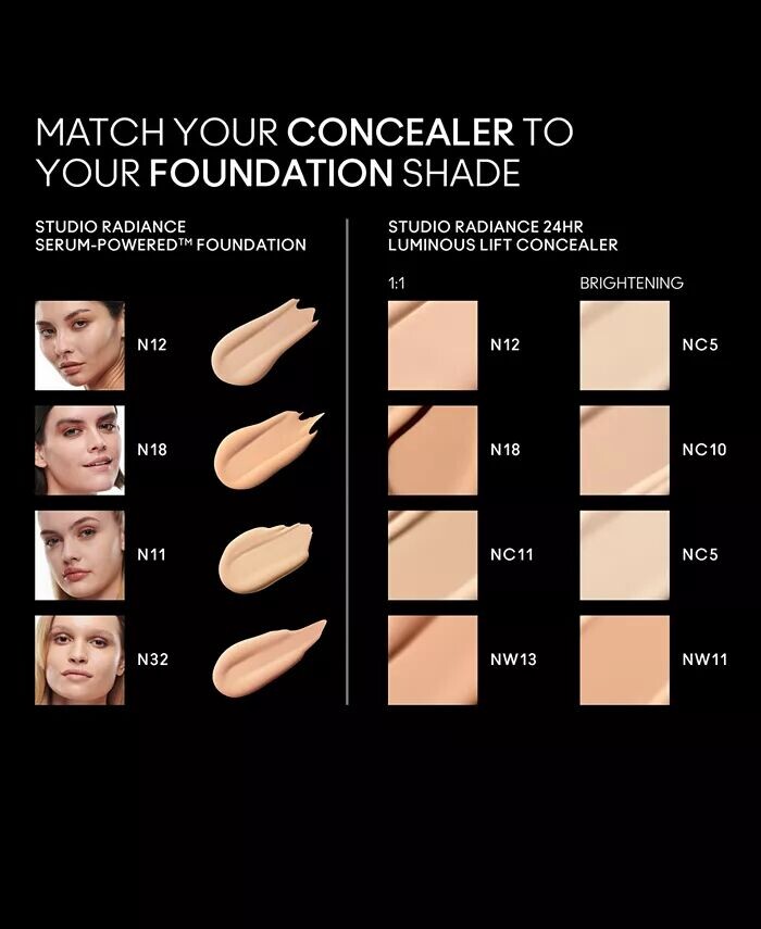 Расставляйте точки, проведите пальцем и подсветите, чтобы скрыть или раскрыть свежий, сияющий, подтянутый вид. Совершенно новый невесомый сияющий консилер MAC обеспечивает 24-часовое среднее покрытие и +90% немедленного увлажнения*, одновременно уменьшая темные круги под глазами на 18%.** В его состав на 80% входят ингредиенты для ухода за кожей, включающие 31 увлажняющий, осветляющий и пухлый компонент. ингредиенты для ухода за кожей, включая ниацинамид, витамин С и гиалуроновую кислоту, чтобы со временем уменьшить появление темных кругов. Он также содержит коктейль из мощных суперпродуктов по уходу за кожей, в том числе оливковое масло и масло жожоба для ухода за кожей. Роскошная текстура легко скользит по коже и плавно растушевывается, обеспечивая сияющий результат без скатывания и образования складок. Консилер Studio Radiance 24HR Luminous Lift Concealer содержит разработанную художником смесь Radiance Blend, состоящую из серебряных и золотых перламутровых частиц, специально созданных для дополнения уникальных оттенков светлой и насыщенной кожи. Он доступен в 44 сияющих оттенках, подходящих к вашему тональному крему Studio Radiance Serum Powered Foundation.