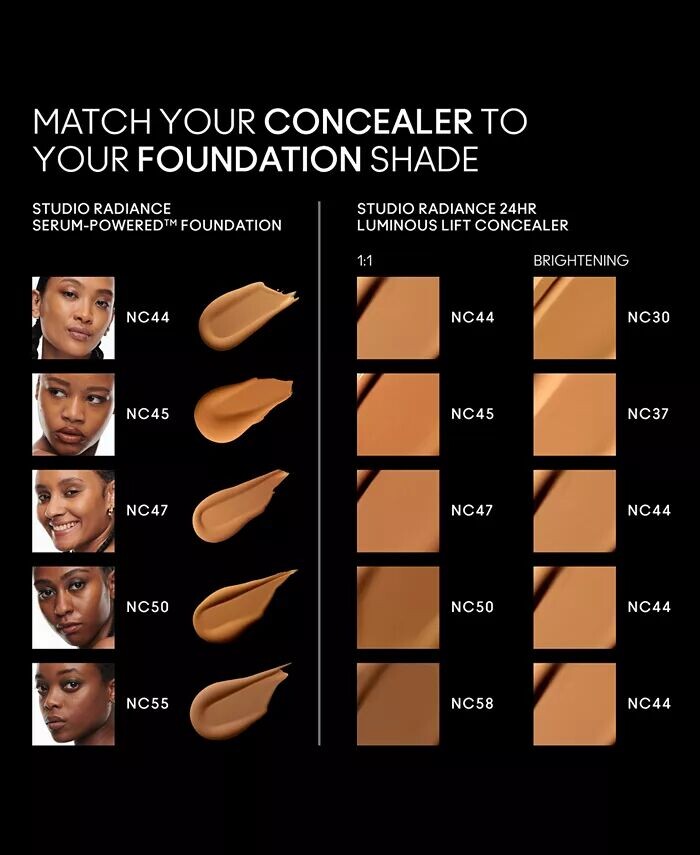 Расставляйте точки, проведите пальцем и подсветите, чтобы скрыть или раскрыть свежий, сияющий, подтянутый вид. Совершенно новый невесомый сияющий консилер MAC обеспечивает 24-часовое среднее покрытие и мгновенное увлажнение на +90%*, одновременно уменьшая с течением времени темные круги под глазами на 18%.** В его состав на 80% входят ингредиенты для ухода за кожей, включающие 31 увлажняющий, осветляющий и пухлый компонент. ингредиенты для ухода за кожей, включая ниацинамид, витамин С и гиалуроновую кислоту, чтобы со временем уменьшить появление темных кругов. Он также содержит коктейль из мощных суперпродуктов по уходу за кожей, в том числе оливковое масло и масло жожоба для ухода за кожей. Роскошная текстура легко скользит по коже и плавно растушевывается, обеспечивая сияющий результат без скатывания и образования складок. Консилер Studio Radiance 24HR Luminous Lift Concealer содержит разработанную художником смесь Radiance Blend, состоящую из серебряных и золотых перламутровых частиц, специально созданных, чтобы дополнять уникальные оттенки светлой и насыщенной кожи. Он доступен в 44 сияющих оттенках, подходящих к вашему тональному крему Studio Radiance Serum Powered Foundation.
