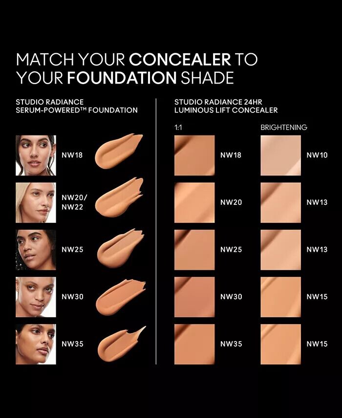 Расставляйте точки, проведите пальцем и подсветите, чтобы скрыть или раскрыть свежий, сияющий, подтянутый вид. Совершенно новый невесомый сияющий консилер MAC обеспечивает 24-часовое среднее покрытие и мгновенное увлажнение на +90%*, одновременно уменьшая с течением времени темные круги под глазами на 18%.** В его состав на 80% входят ингредиенты для ухода за кожей, включающие 31 увлажняющий, осветляющий и пухлый компонент. ингредиенты для ухода за кожей, включая ниацинамид, витамин С и гиалуроновую кислоту, чтобы со временем уменьшить появление темных кругов. Он также содержит коктейль из мощных суперпродуктов по уходу за кожей, в том числе оливковое масло и масло жожоба для ухода за кожей. Роскошная текстура легко скользит по коже и плавно растушевывается, обеспечивая сияющий результат без скатывания и образования складок. Консилер Studio Radiance 24HR Luminous Lift Concealer содержит разработанную художником смесь Radiance Blend, состоящую из серебряных и золотых перламутровых частиц, специально созданных, чтобы дополнять уникальные оттенки светлой и насыщенной кожи. Он доступен в 44 сияющих оттенках, подходящих к вашему тональному крему Studio Radiance Serum Powered Foundation.