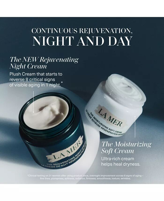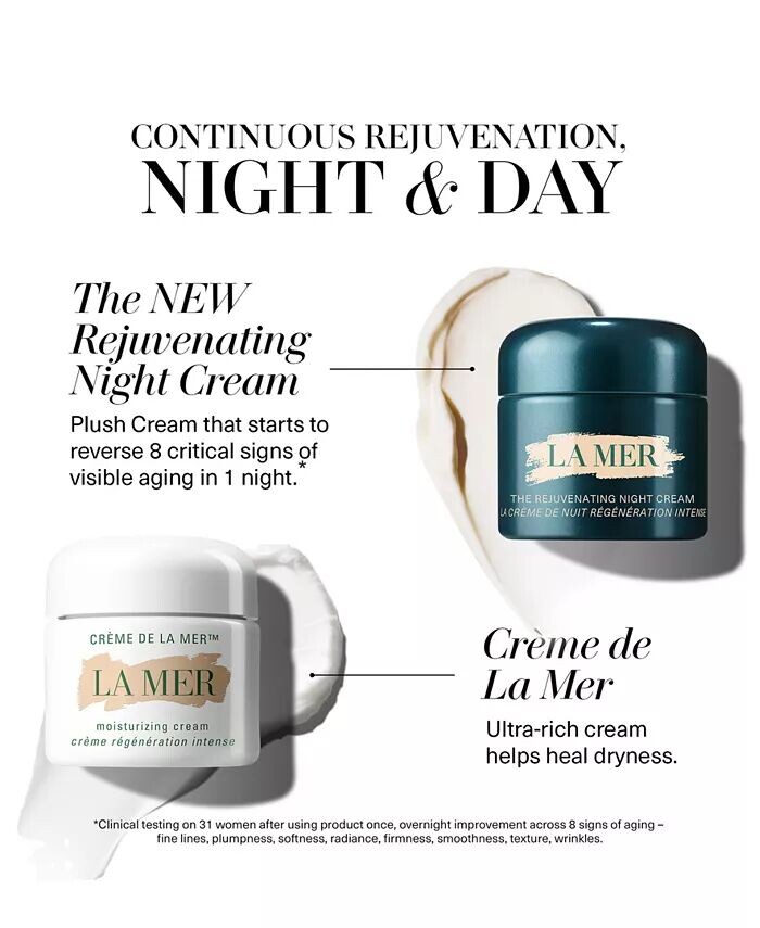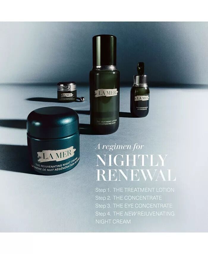 НОВЫЙ омолаживающий ночной крем, обогащенный обновляющим чудодейственным бульоном и НОВОЙ альтернативой морскому ретинолу MRA-3, — это фирменный лечебный увлажняющий крем La Mer, оптимизированный для ночного использования. Этот ночной крем для лица ускоряет омоложение без раздражающих побочных эффектов ретинола. Добавление этого нежного крема в ваш ночной уход за кожей вместе с другими любимыми кремами La Mer поможет восстановить силы кожи во время отдыха.