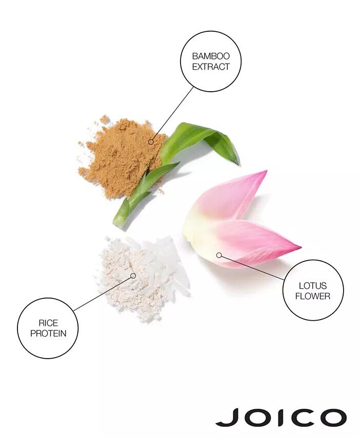 Обильная пена мягко, но тщательно очищает волосы; мгновенно добавляет легкость телу; более полный, густой воздушный объем; Сохранение прически в течение 24 часов при использовании шампуня, кондиционера и стайлера для полного объема Joi