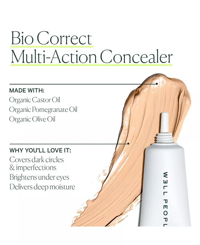 Корректируйте, совершенствуйте и омолаживайте свою кожу с помощью биоконсилера Well People. Этот консилер полного покрытия имеет легкую, как воздух, кремовую формулу, которая плавно растушевывается и скрывает недостатки.