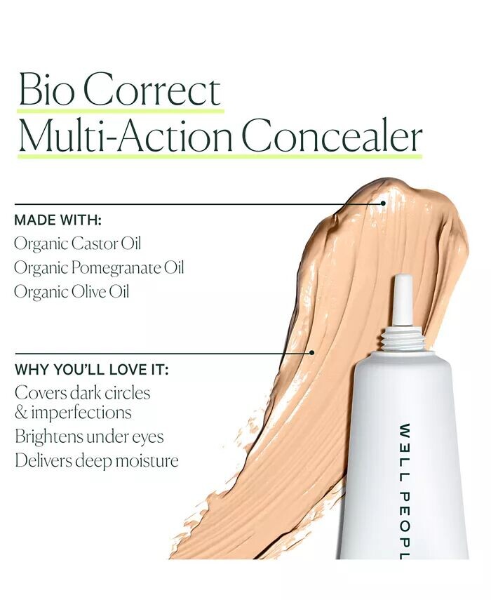 Корректируйте, совершенствуйте и омолаживайте свою кожу с помощью биоконсилера Well People. Этот консилер полного покрытия имеет легкую, как воздух, кремовую формулу, которая плавно растушевывается и скрывает недостатки.