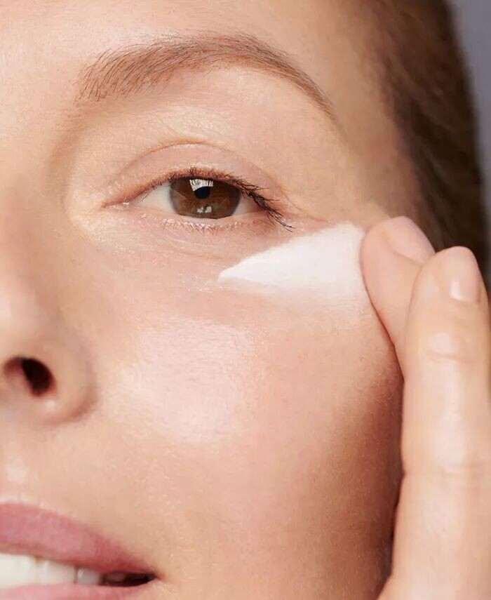 Разогрейте кончики пальцев, прежде чем постучать безымянным пальцем под глазами от внутреннего угла к внешнему. Слегка массируйте для впитывания, стараясь не тянуть и не дергать эту деликатную область.