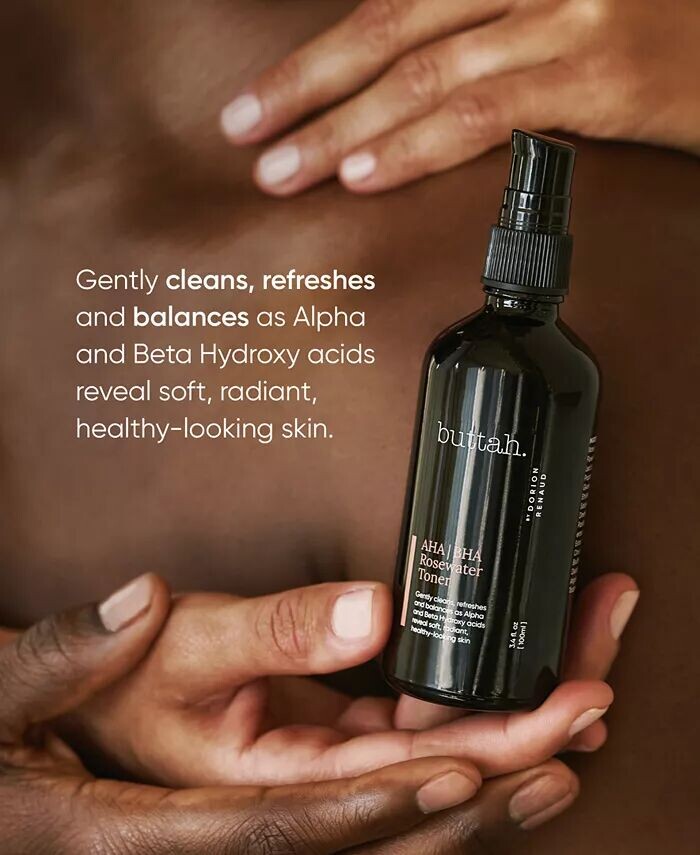 Buttah Skin AHA/BHA Rosewater Toner — это инновационный многофункциональный бодрящий тоник для лица для сухой, жирной, комбинированной, чувствительной и склонной к акне кожи. Этот увлажняющий и очищающий тоник с дамасской розой омолаживает и естественным образом осветляет кожу, обеспечивая увлажнение и балансируя уровень p H кожи. Он освежает тусклую, уставшую кожу, оставляя после себя увлажненный, сияющий и мягкий цвет лепестков розы.