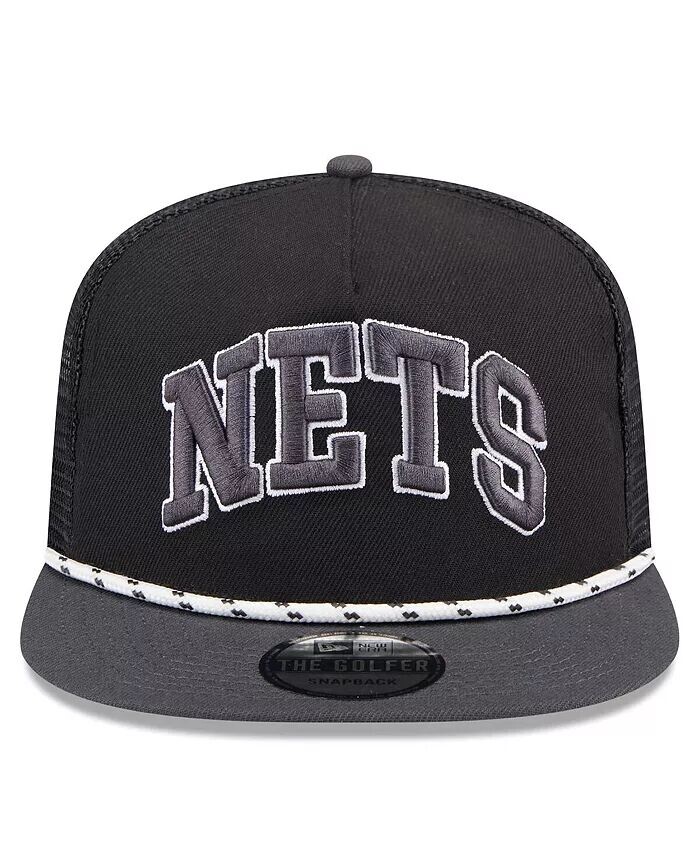 Мужская черная/угольная кепка Brooklyn Nets Throwback Team Arch Golfer Snapback New Era, черный