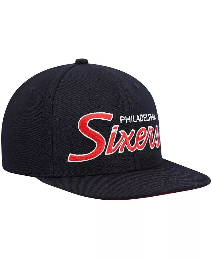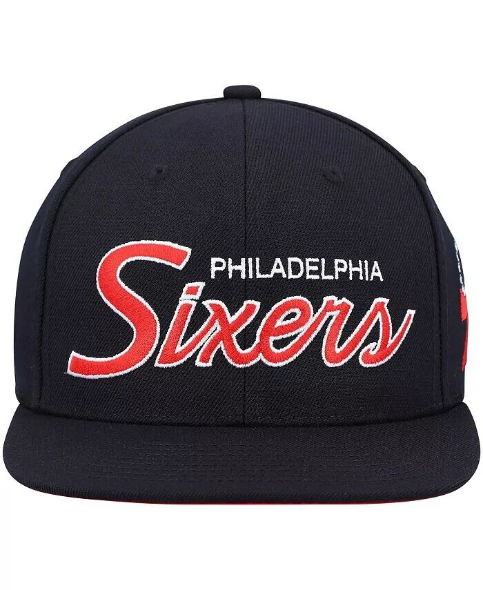 Мужская черная кепка Philadelphia 76Ers Hardwood Classics Script 2.0 Snapback Mitchell & Ness