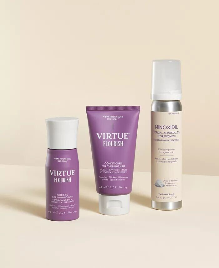 Режим на основе миноксидила, который питает кожу головы и активирует волосяные фолликулы, стимулируя их рост. Трехступенчатая система включает в себя шампунь Flourish для истонченных волос, кондиционер для истонченных волос Flourish и 5%-ную пену в виде аэрозоля для местного применения с миноксидилом. Этот режим идеально подходит при умеренном и сильном выпадении волос. Через 2 недели ваши существующие волосы станут здоровее и будут выглядеть более яркими. Кутикулы восстанавливаются и восстанавливается блеск. Через 4 недели каждая прядь волос станет толще, объемнее и упругее. Вы можете заметить больше выпадений. Не паникуйте, это нормально. Это означает, что ваши фолликулы выталкивают застоявшиеся волосы, готовясь к новому, активному росту. Через 8 недель ваша кожа головы станет более плодородной, поскольку ее поверхность преобразится. Засоренные фолликулы очищаются, а влагобарьер улучшается. Вы должны увидеть снижение выделения. Через 12–16 недель, когда появляются новые нежные волоски, о них начинают заботиться и питать. Ваши существующие волосы будут здоровыми, а новые будут спокойно занимать свое место. Аромат представляет собой нежную спа-композицию ароматических трав, ярких цитрусовых, чистых цветов и балансирующей древесины с эфирными маслами базилика и пачули для ухода за кожей головы и здоровьем волос.